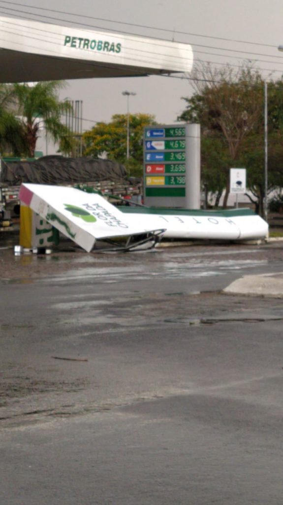 O vendaval começou por volta das 15:10, durou alguns minutos e foi o suficiente para arrancar árvores, derrubar placas, telhados e até uma torre de holofote no Estádio da Primavera caiu com a força do vento.