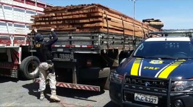 A Polícia Rodoviária Federal (PRF) apreendeu 17,54 m³ de madeira ilegal na noite desta segunda-feira (11) em Barreiras, oeste baiano.