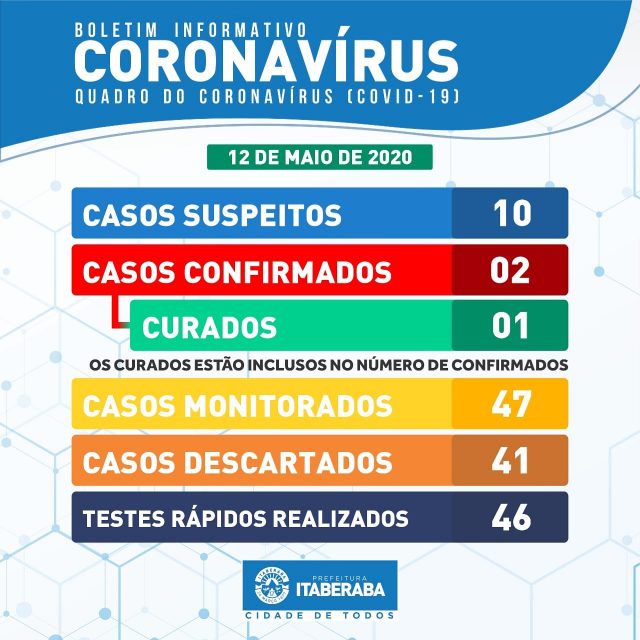 A prefeitura de Itaberaba acaba de divulgar a atualização diária do novo Boletim Epidemiológico sobre a evolução dos casos de coronavirus na cidade.
