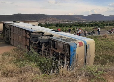 Um ônibus de uma empresa conquistense tombou na tarde de sábado (07), em Jussiape. O acidente aconteceu em um trecho da BA-148, próximo do Distrito de Caraguataí e apesar do susto não foi registrado feridos com maior gravidade entre os passageiros.